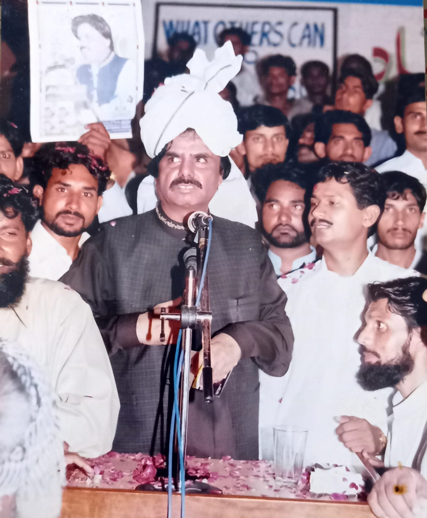 جشن فتح میوات قذافی اسٹیڈیم لاہور ۔ ممتاز شفیق میو نے شھید اجمل خاں میو کو پگڑی پہنائی اور تلوار کا تحفہ دیا ۔ اسی تلوار سے کیک کاٹا گیا 2005